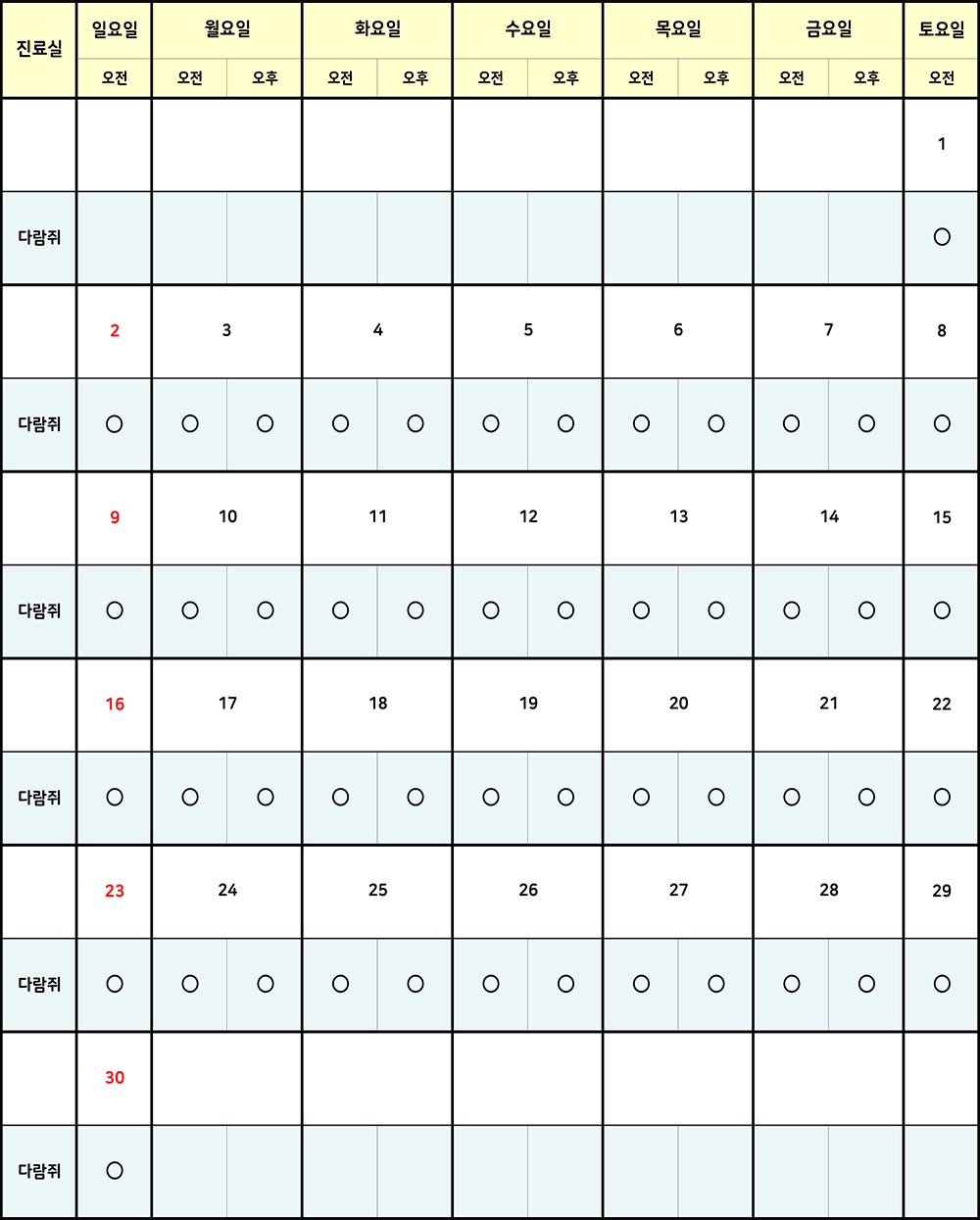 2025년 11월 진료시간표